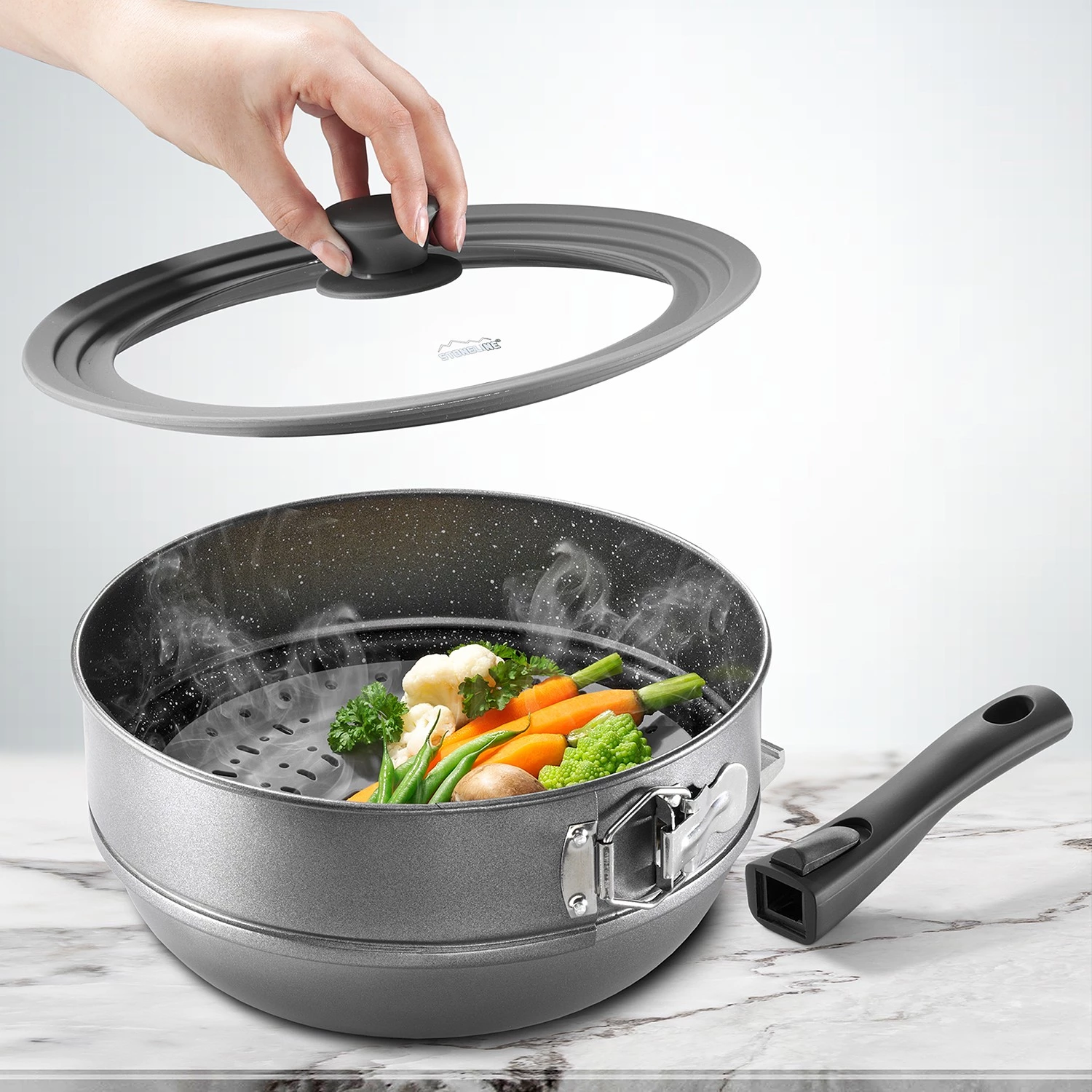 - Weitere Maße: 1 x Bratpfanne mit abnehmbarem Griff